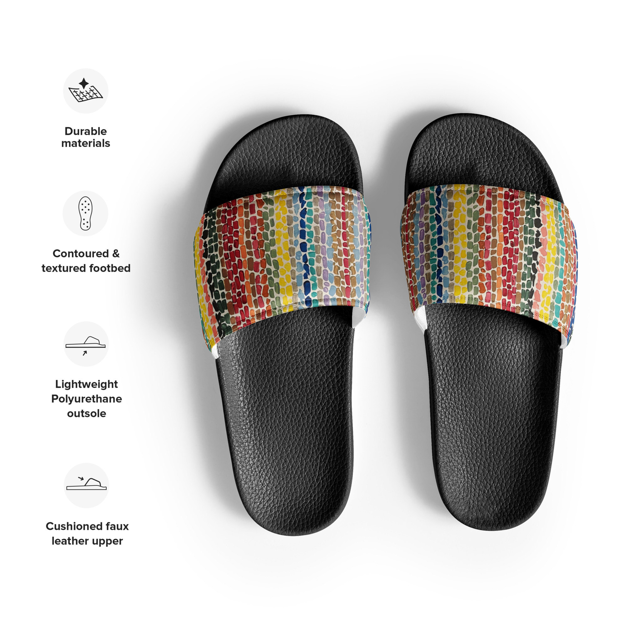 • Cushioned and durable faux leather upper strap